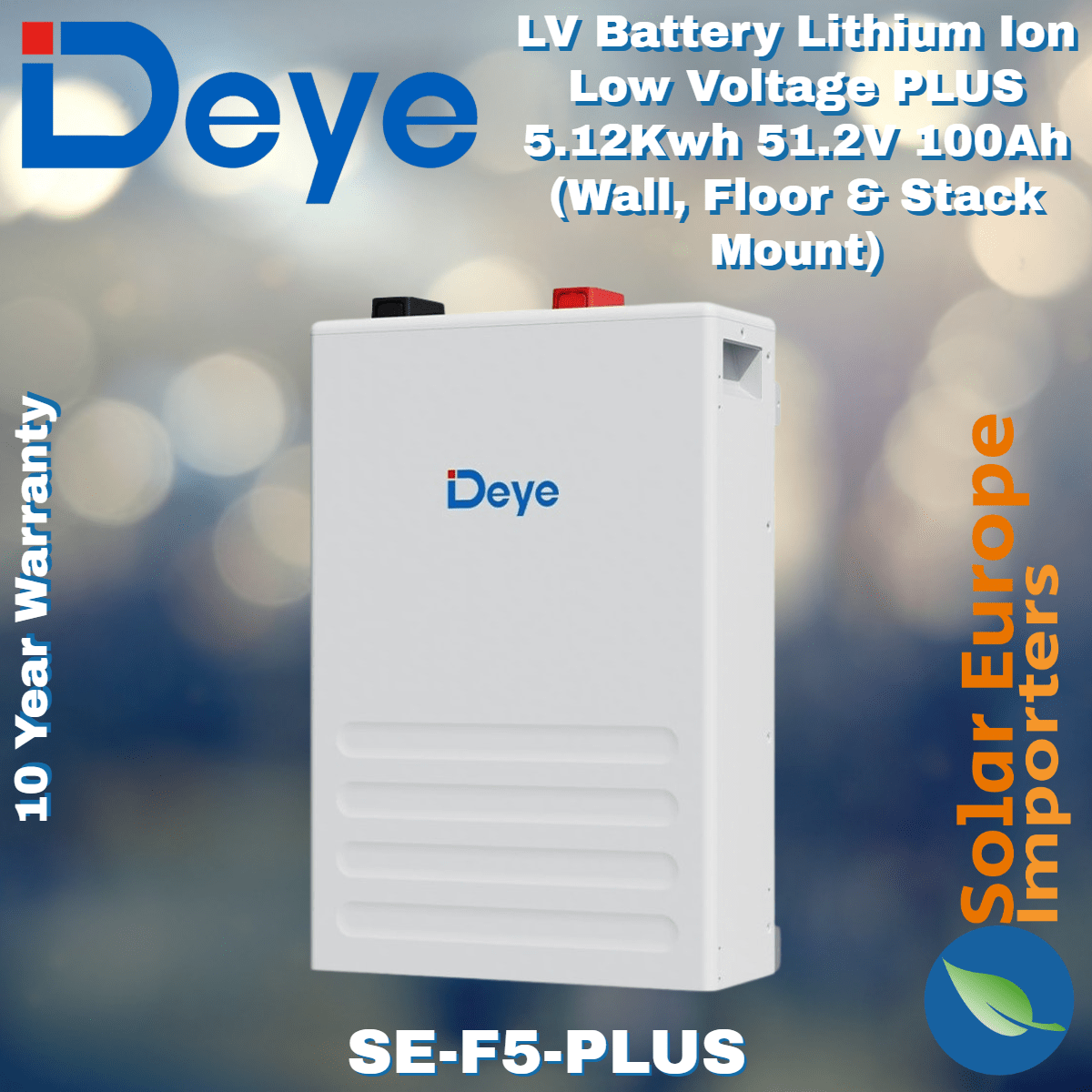 Deye: LV Battery Lithium Ion Low Voltage PLUS 5.12Kwh 51.2V 100Ah (Wall, Floor & Stack Mount) (10 Year Warranty) (SE-F5-PLUS)