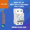 Etek: AC 2P Mini Circuit Breaker 10A 4.5KA (EKM3-63S-210)