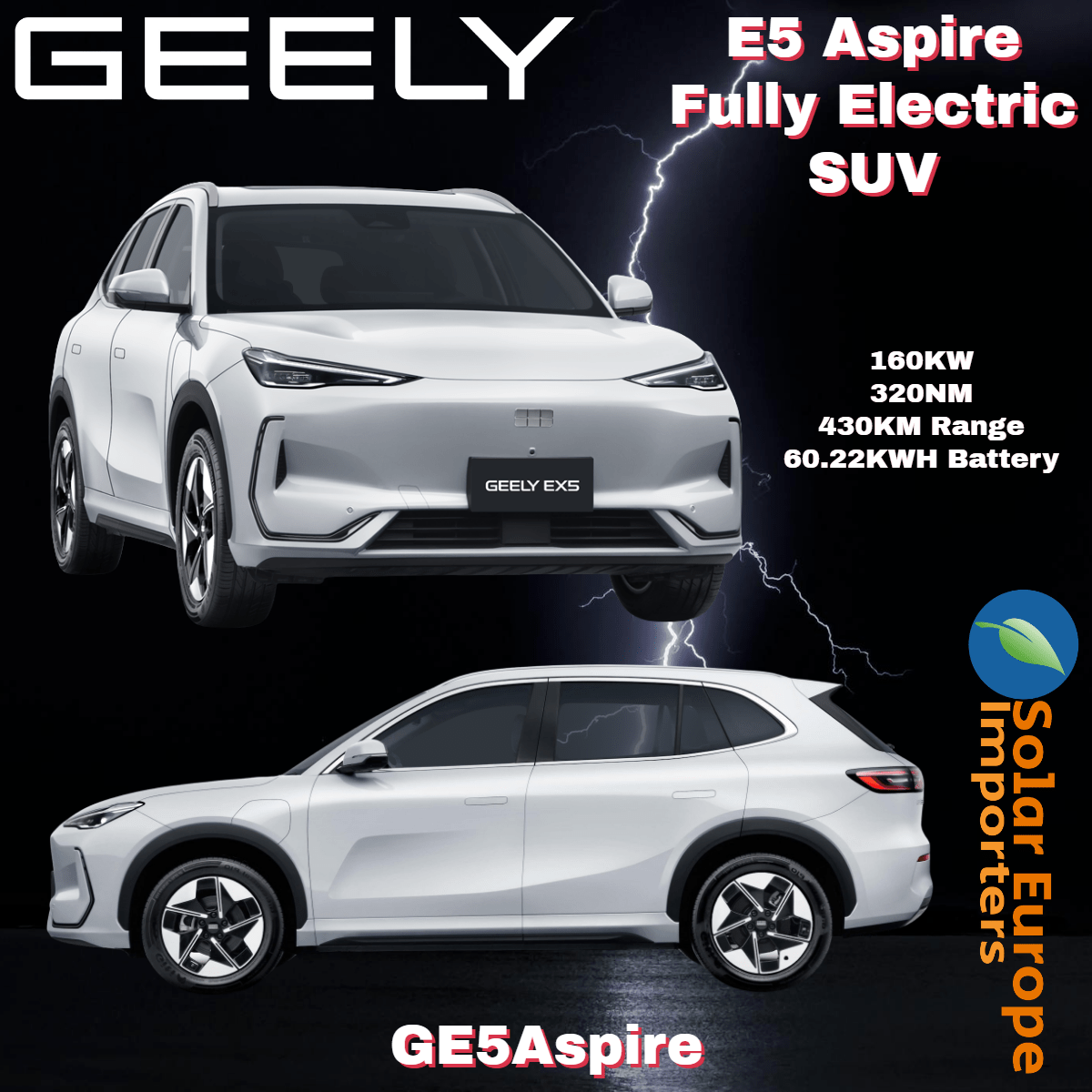 Geely: E5 Aspire Fully Electric SUV (FWD 160KW 320NM WLTP Range: 430KM 60.22KWH Battery) (GE5Aspire)