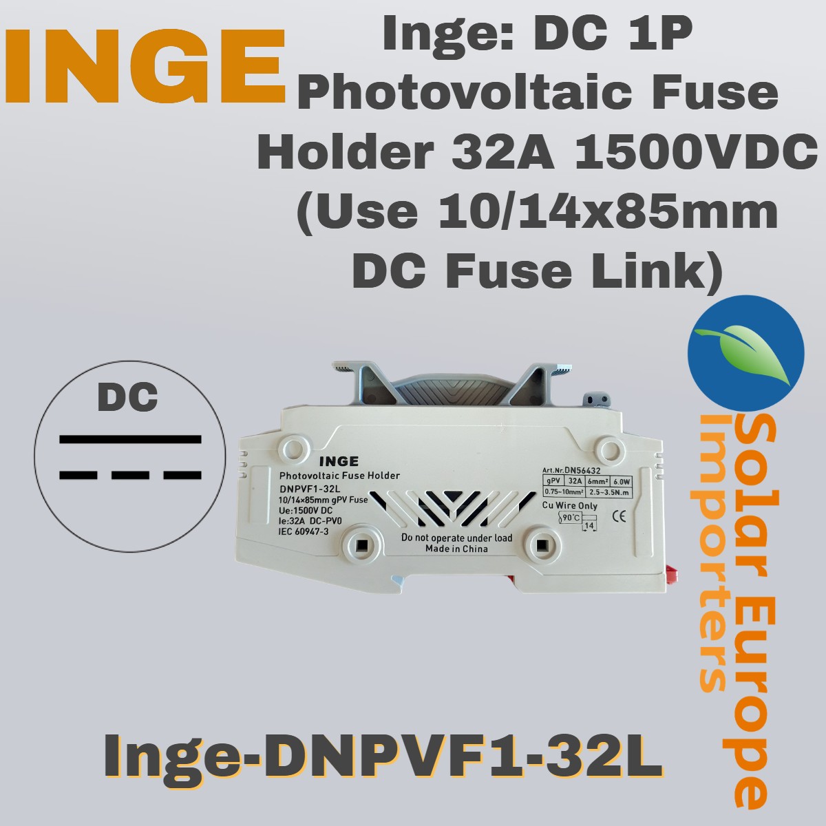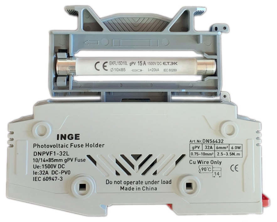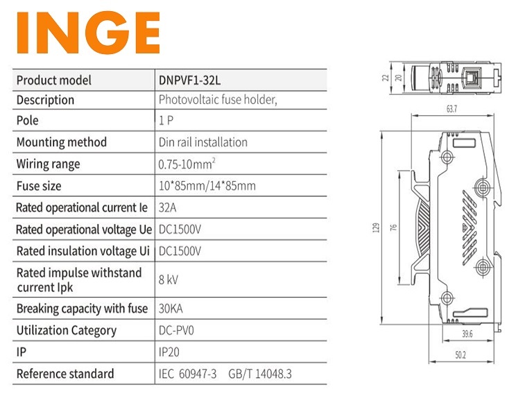 Inge: DC 1P Photovoltaic Fuse Holder 32A 1500VDC (Use 10/14x85mm DC Fuse Link) (Inge-DNPVF1-32L)