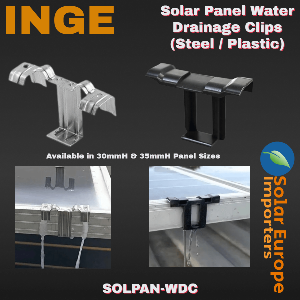 Inge: Solar Panel Water Drainage Clip (30mm Steel) (SOLPAN-WDC-30S)