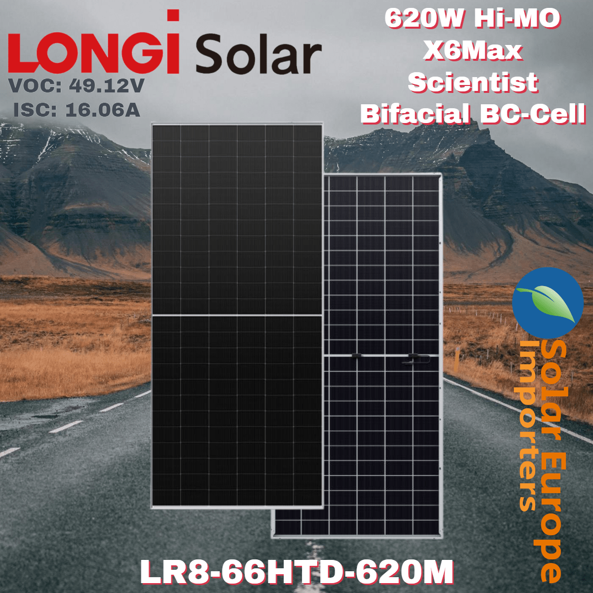 Longi: 620W Hi-MO X6Max Scientist Bifacial BC-Cell – VOC: 49.12 / ISC: 16.06 (LR8-66HTD-620M)